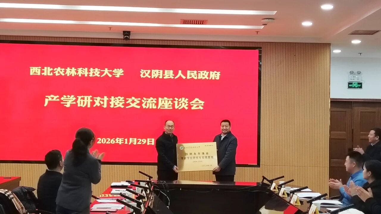 1月29日,汉阴县委常委、组织部部长李万华,县委常委、副县长胡轶带队赴西北农林科技大学,与该校签订共建渔业 专业学位研究生实践基地合作协议。西北农林科技大学党委常委、副书记 庄世宏出席签约仪式并讲话,研究生院常务副院长韩娟主持会议。此次签约是校地双方深入贯彻落实乡村振兴战略、深化产学研用深度融合的重要举措,标志着汉阴渔业发展正式迈入"校地联动、科技赋能、产业升级"的新阶段。
